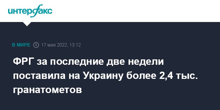 Москва. 17 мая. INTERFAX.RU - Украина за последние две недели получила от ФРГ и распределила среди военных 2 450 одноразовых гранатомётов "Матадор", сообщает во вторник Der Spiegel.