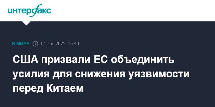 США призвали ЕС объединить усилия для снижения уязвимости перед Китаем