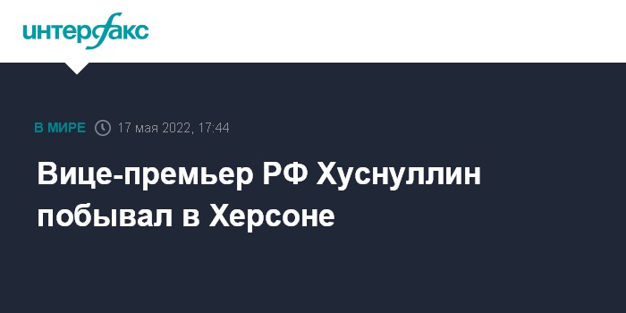 Москва. 17 мая. INTERFAX.RU - Запуск экономики Херсонской области является главной задачей в этом регионе на сегодня, заявил заместитель председателя правительства РФ Марат Хуснуллин во вторник в ходе поездки туда.