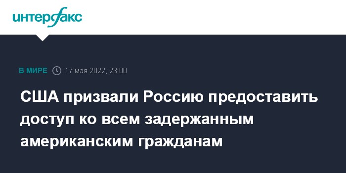 Москва. 17 мая. INTERFAX.RU - США продолжают призывать РФ предоставить постоянный консульский доступ ко всем задержанным на территории страны американским гражданам, сообщил представитель госдепа Нед Прайс во вторник.