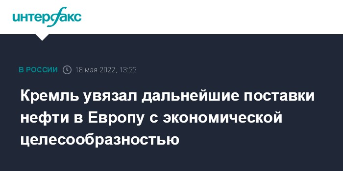 Москва. 18 мая. INTERFAX.RU - В Москве вопрос о продолжении поставок нефти в Европу, если страны "Большой семерки" введут на нее дополнительные пошлины, будут решать в зависимости от экономической целесообразности, заявил пресс-секретарь президента Дмитрий Песков.