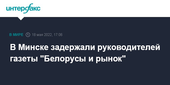 Москва. 18 мая. INTERFAX.RU - В Минске задержали руководителей газеты "Белорусы и рынок", сообщили в Белорусской ассоциации журналистов в среду.