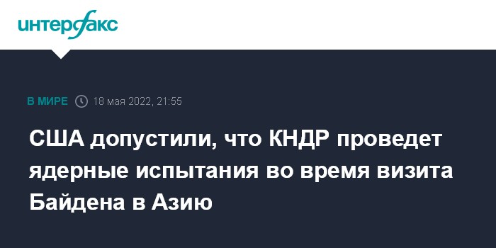 "Наши разведданные говорят о реальной возможности, что будут проведены либо ракетные испытания, включая испытания ракет большой дальности, либо ядерные испытания, или даже оба варианта, причем либо в день начала поездки президента Байдена в регион, либо - на второй день", - сказал он.