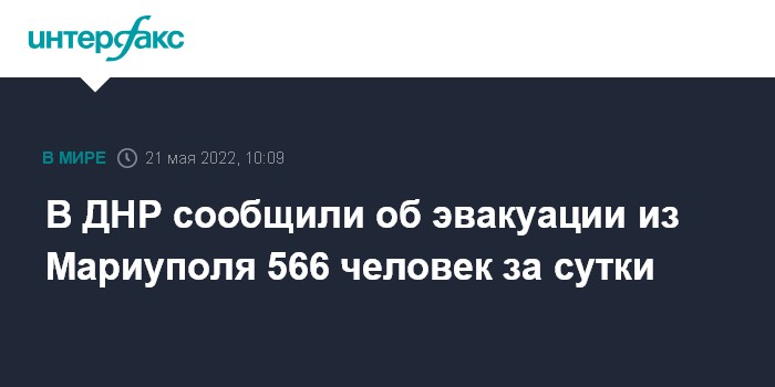 Москва. 21 мая. INTERFAX.RU - Из Мариуполя за прошлые сутки на территорию ДНР эвакуированы более 500 человек, сообщает в субботу штаб территориальной обороны Донецкой народной республики.