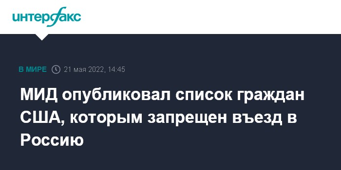 Москва. 21 мая. INTERFAX.RU - На сайте МИД России опубликован перечень американских граждан, которым закрыт въезд в РФ на постоянной основе, сообщает российское внешнеполитическое ведомство.