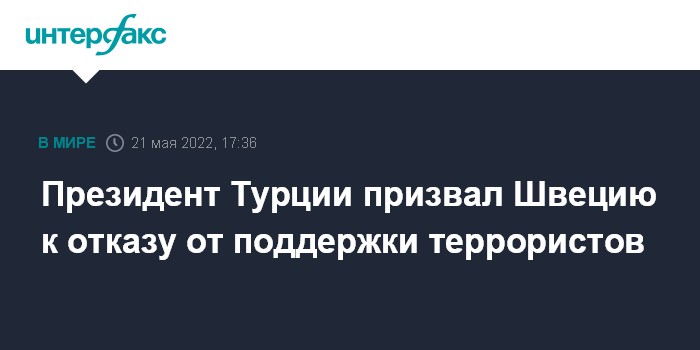 "Анкара ожидает от Швеции серьезных и конкретных шагов, разделяющих опасения Турции относительно террористов РПК (Рабочей партии Курдистана - ИФ), а также сирийского и иракского ответвлений этой кровавой организации", - приводит агентство слова турецкого лидера.
