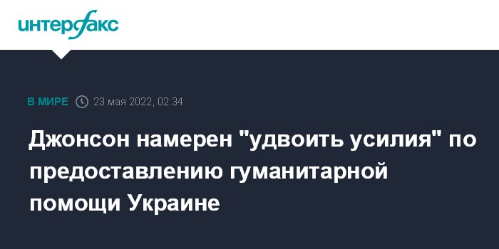 Москва. 23 мая. INTERFAX.RU - Премьер-министр Великобритании Борис Джонсон планирует удвоить усилия по предоставлению помощи Украине, сообщил офис британского премьера.