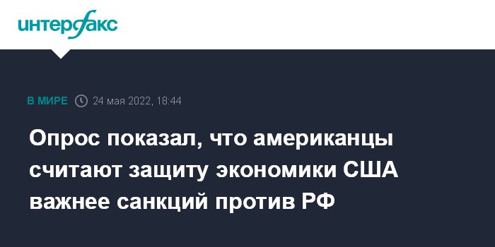 Москва. 24 мая. INTERFAX.RU - Все больше американцев считает, что приоритетом для Вашингтона должны быть не санкции против РФ, а защита экономики США в связи с действием этих ограничений, свидетельствуют результаты опроса Associated Press (AP) и исследовательского центра NORC.
