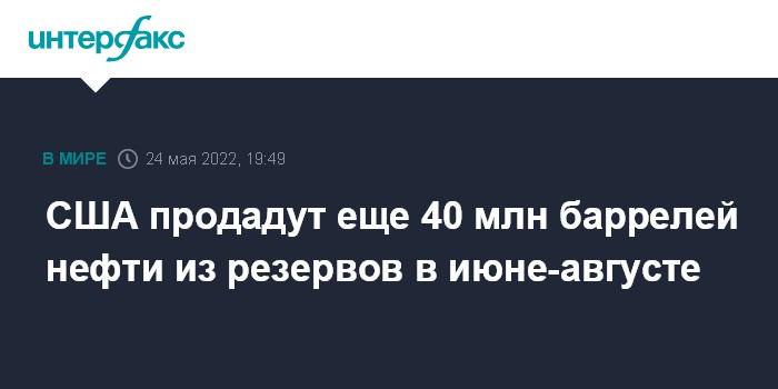 Эти объемы входят в объявленный США в марте план по реализации нефти в объеме 1 млн баррелей в сутки на протяжении шести месяцев из SPR для борьбы с высокими ценами на топливо и перебоями в поставках. С мая по июль планируется высвободить 90 млн баррелей, оставшиеся 90 млн баррелей – в период с августа по октябрь.