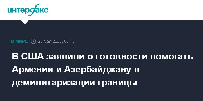 Москва. 25 мая. INTERFAX.RU - Для восстановления мира на Южном Кавказе США готовы оказать помощь Армении и Азербайджану в демилитаризации и демаркации границы между ними, заявил госсекретарь США Энтони Блинкен в беседе с армянским премьером Николом Пашиняном, сообщил американский госдепартамент.