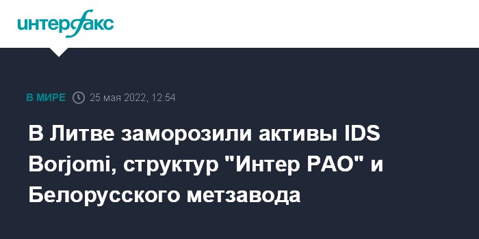 В Литве заморозили активы IDS Borjomi, структур "Интер РАО" и Белорусского метзавода