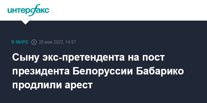 Москва. 25 мая. INTERFAX.RU - Сыну экс-претендента на участие в президентских выборах в Белоруссии Виктора Бабарико Эдуарду отказали в освобождении и продлили содержание под стражей. Об этом сообщает официальный канал Виктора Бабарико в среду.