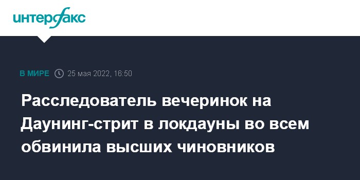 Москва. 25 мая. INTERFAX.RU - В ситуации с проведением вечеринок в офисе на Даунинг-стрит в период, когда из-за пандемии в Британии были запрещены собрания, высшее руководство Великобритании проявило качества, недостойные лидеров, и допустило ошибочные суждения, и должно понести ответственность.