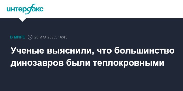 Москва. 26 мая. INTERFAX.RU - Американские и испанские палеонтологи использовали новый метод, чтобы определить, какие из динозавров были теплокровными, как млекопитающие и птицы, а какие - холоднокровными, как рептилии, сообщается на портале научной информации Phys.org.
