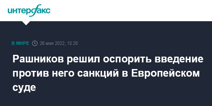 "В рамках действующей процедуры, установленной статьями 263 и 264 договора о функционировании Европейского союза, было направлено заявление в Европейский суд общей юрисдикции об отмене решения совета ЕС 2022/429 и имплементационного регламента совета ЕС 2022/427 от 15 марта 2022 года о включении Рашникова в список лиц, подпадающих под ограничительные меры", - подтвердил "Интерфаксу" представитель бизнесмена.