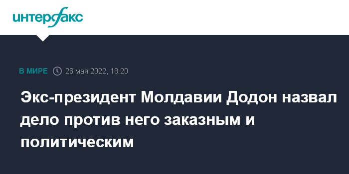 Москва. 26 мая. INTERFAX.RU - Экс-президент Молдавии Игорь Додон заявил, что уголовное дело в отношении него является политическим и возбуждено по заказу действующего президента Майи Санду.