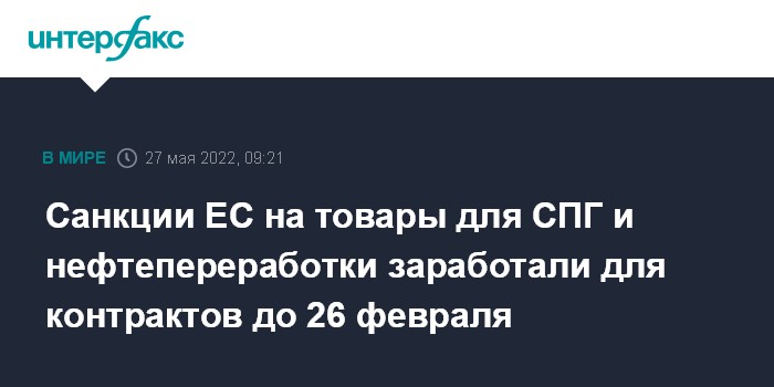 Санкции ЕС на товары для СПГ и нефтепереработки заработали для контрактов до 26 февраля