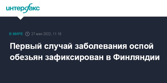 Москва. 27 мая. INTERFAX.RU - В Финляндии подтвержден первый случай заболевания оспой обезьян.