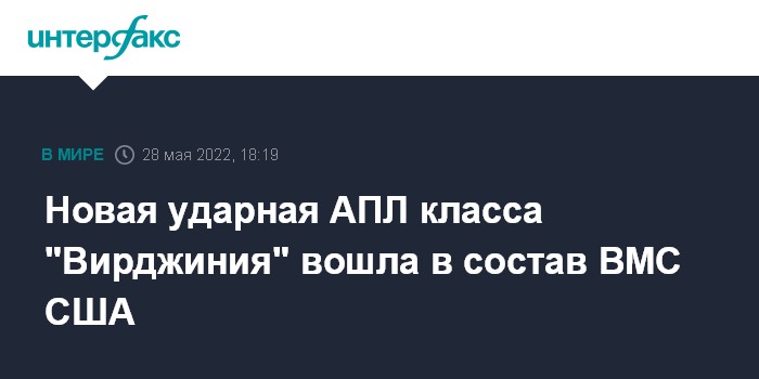 Москва. 28 мая. INTERFAX.RU - Ударная атомная подводная лодка USS Oregon ("Орегон") класса Virginia ("Вирджиния") в субботу в ходе церемонии на базе американских субмарин Нью-Лондон в городе Гротон (штат Коннектикут) официально введена в боевой состав Военно-морских сил США, сообщил Пентагон.