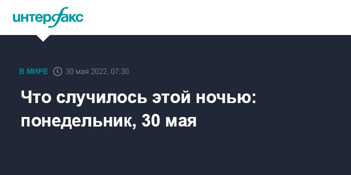 Москва. 30 мая. INTERFAX.RU - Краткая сводка событий, произошедших к утру: