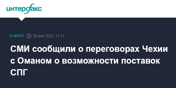 Москва. 30 мая. INTERFAX.RU - Чешские власти продолжают переговоры с зарубежными партнерами с целью избавиться от зависимости от российского газа. Местному информационному порталу Seznam Zpravy стало известно, что недавно такие переговоры прошли в Омане.
