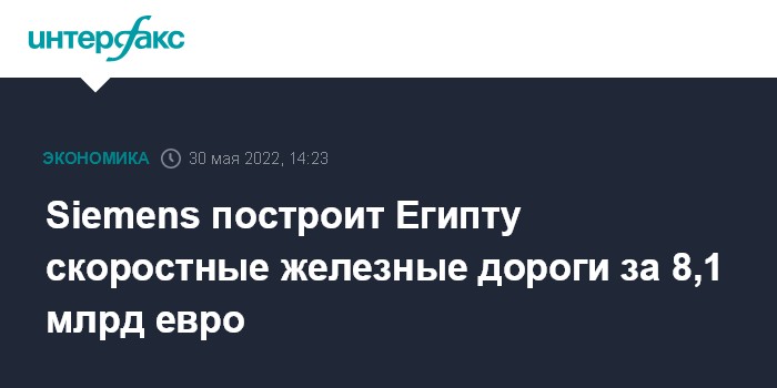 Siemens подписал с Египтом контракт на строительство первой железнодорожной линии на сумму 2,7 млрд евро еще 1 сентября 2021 года. Партнерами проекта стали египетские Orascom Construction и The Arab Contractors.