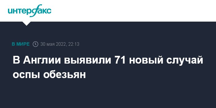 Москва. 30 мая. INTERFAX.RU - В Англии зарегистрировали 71 новый случай заражения оспой обезьян, сообщают британские СМИ.