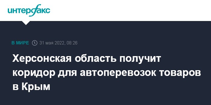 Москва. 31 мая. INTERFAX.RU - На границе Херсонской области и Крыма откроют отдельный пропускной пункт для грузовых автомобилей с товарами, сообщил "Интерфаксу" заместитель главы военно-гражданской администрации (ВГА) Херсонской области Кирилл Стремоусов.