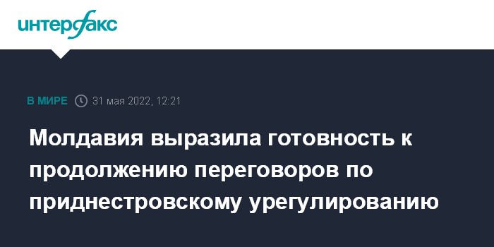 Москва. 31 мая. INTERFAX.RU - Президент Молдавии Майя Санду заявила, что Кишинев готов к продолжению переговоров по приднестровскому урегулированию, но это возможно только после нормализации ситуации на Украине. Об этом она заявила накануне телеканалу PROTV-Chisinau.