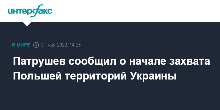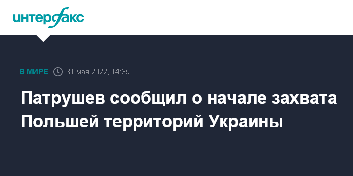 Москва. 31 мая. INTERFAX.RU - Секретарь Совбеза России Николай Патрушев заявил, что Польша переходит к захвату территорий на западе Украины.