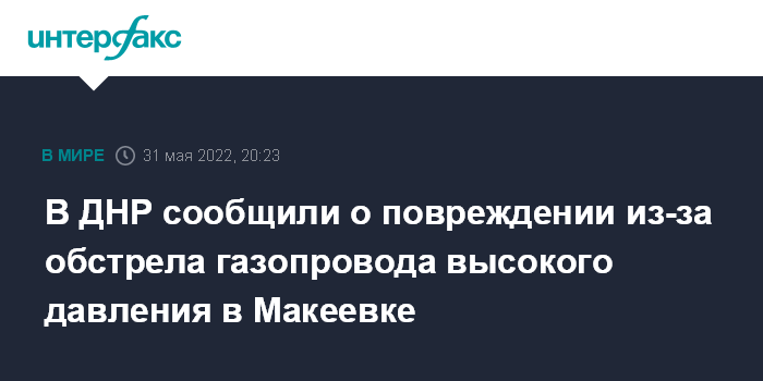 Москва. 31 мая. INTERFAX.RU - Газопровод высокого давления перебит в результате обстрела Макеевки со стороны Вооруженных сил Украины, есть угроза коксохимзаводу, сообщает Совместный центр контроля и координации режима прекращения огня (СЦКК) Донецкой народной республики.