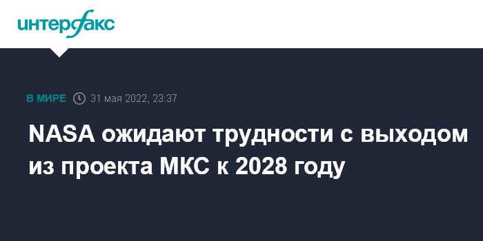 NASA ожидают трудности с выходом из проекта МКС к 2028 году