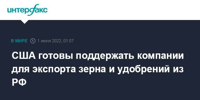 США готовы поддержать компании для экспорта зерна и удобрений из РФ