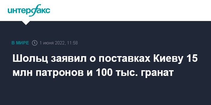 "Мы постоянно поставляем, с начала войны", - сказал он в среду в бундестаге. "До сих пор мы поставили более 15 миллионов патронов, 100 тысяч ручных гранат, более 5 тысяч противотанковых мин", - отметил канцлер.
