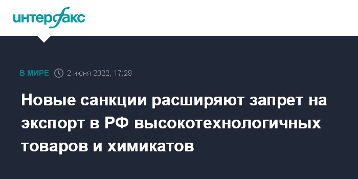Новые санкции расширяют запрет на экспорт в РФ высокотехнологичных товаров и химикатов