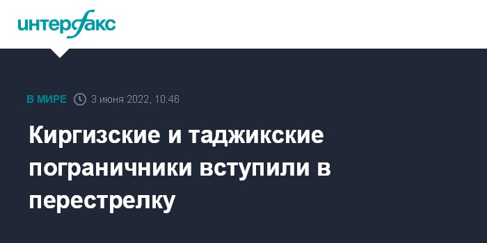 Москва. 3 июня. INTERFAX.RU - Между пограничниками Киргизии и Таджикистана в пятницу произошла перестрелка, таджикская сторона применила минометы. Об этом сообщила пресс-служба киргизской пограничной службы.