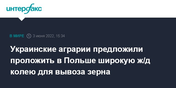 Москва. 3 июня. INTERFAX.RU - Всеукраинская аграрная рада (ВАР) предложила построить на территории Польши 300 км ширококолейных железнодорожных путей для прямых поставок зерна в порт Клайпеды, это позволит не перегружать вагоны на границе с Литвой и Украиной.