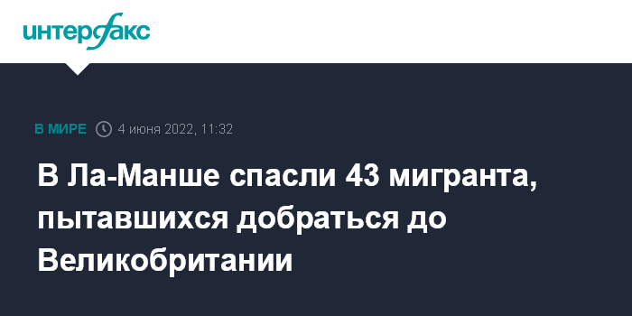 Москва. 4 июня. INTERFAX.RU - Очередная попытка мигрантов пересечь Ла-Манш на лодке в сторону Великобритании чуть было не закончилась трагедией, 43 человека были спасены накануне французской службой наблюдения и спасения, сообщил в субботу телеканал BFMTV.