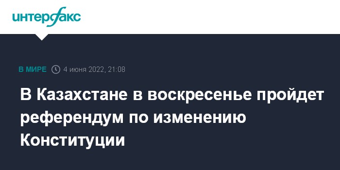 Москва. 4 июня. INTERFAX.RU - В Казахстане в воскресенье, 5 июня, состоится республиканский референдум по внесению изменений и дополнений в Конституцию.