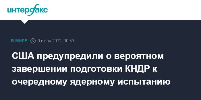 Москва. 8 июня. INTERFAX.RU - Американский спецпредставитель по Северной Корее Сон Ким заявил о вероятном завершении подготовки КНДР к седьмому ядерному испытанию на полигоне Пунгери, которое может быть проведено в любое время.