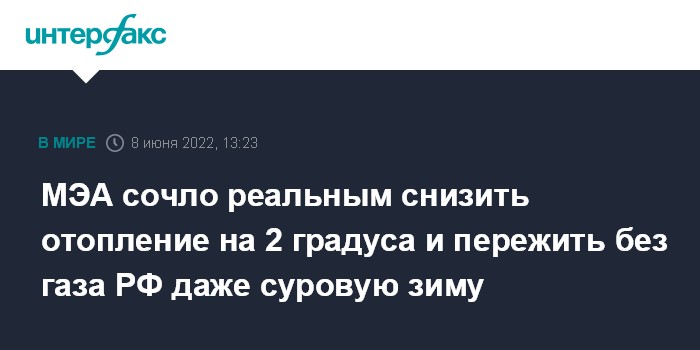 МЭА сочло реальным снизить отопление на 2 градуса и пережить без газа РФ даже суровую зиму