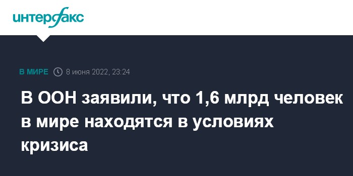 В ООН заявили, что 1,6 млрд человек в мире находятся в условиях кризиса