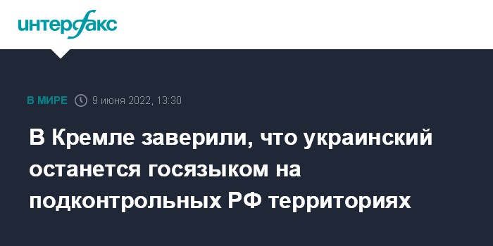 На вопрос журналистов, "останется ли украинский язык государственным на освобожденных территориях Украины", представитель Кремля ответил: "Можно однозначно сказать, что, естественно, да. Ответ - да".