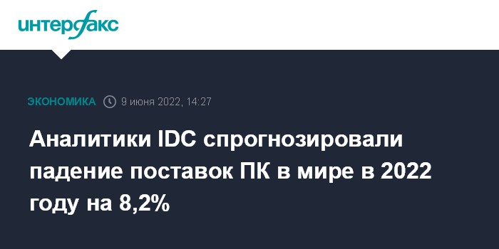 Москва. 9 июня. INTERFAX.RU - Мировые поставки персональных компьютеров по итогам 2022 года упадут на 8,2% и составят 321,2 млн, прогнозирует исследовательская компания International Data Corporation (IDC).