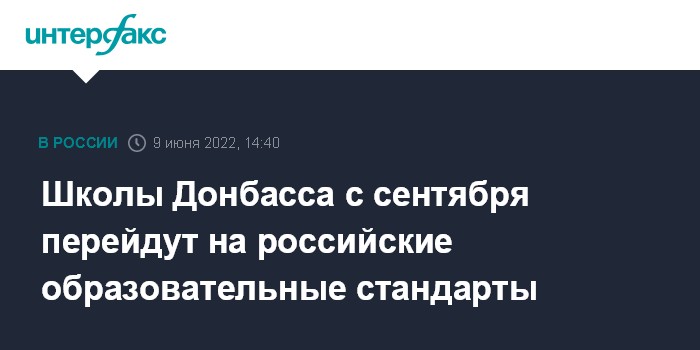 Москва. 9 июня. INTERFAX.RU - С 1 сентября школы Донецкой и Луганской народных республик перейдут на российские образовательные стандарты, объявил министр просвещения Сергей Кравцов журналистам перед форумом "Единое образовательное пространство".