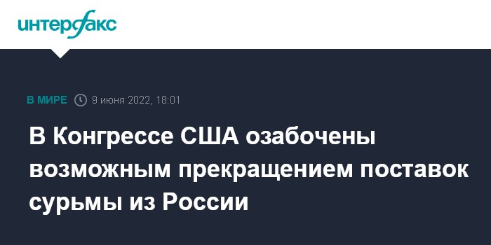 Москва. 9 июня. INTERFAX.RU - В Вашингтоне выражают озабоченность возможным прекращением поставок российской сурьмы, необходимой для военного производства, из-за напряженности в отношениях с Москвой и введенных санкций, сообщает американское оборонное издание Defense News.