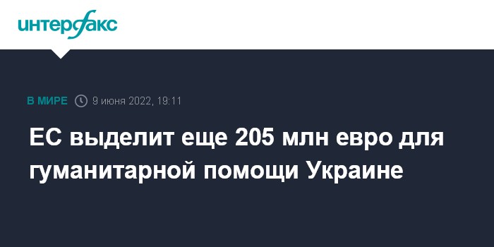 Москва. 9 июня. INTERFAX.RU - Еврокомиссия (ЕК) объявила в четверг о выделении дополнительно 205 млн евро на гуманитарную помощь Украине.