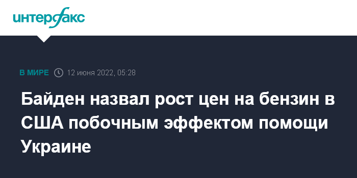 Москва. 12 июня. INTERFAX.RU - Президент США Джо Байден сказал, что рост цен на бензин и инфляция в стране это "побочный продукт" помощи Украине.