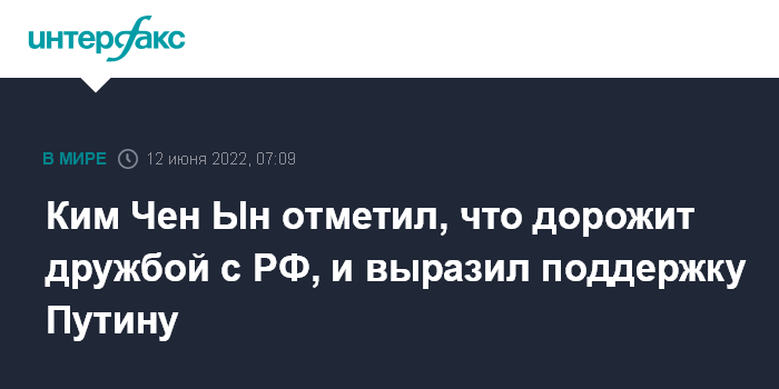 Москва. 12 июня. INTERFAX.RU - Лидер Северной Кореи Ким Чен Ын выразил полную поддержку президенту России Владимиру Путину, сообщает ЦТАК.