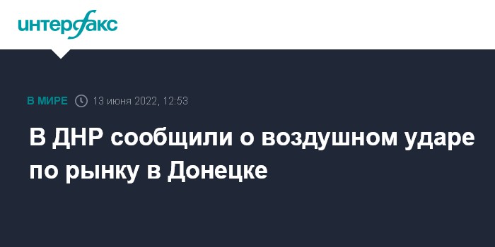 Москва. 13 июня. INTERFAX.RU - По меньшей мере двое мирных жителей погибли в результате удара по рынку в тыловом районе Донецка в понедельник, сообщили в правительстве Донецкой народной республики.